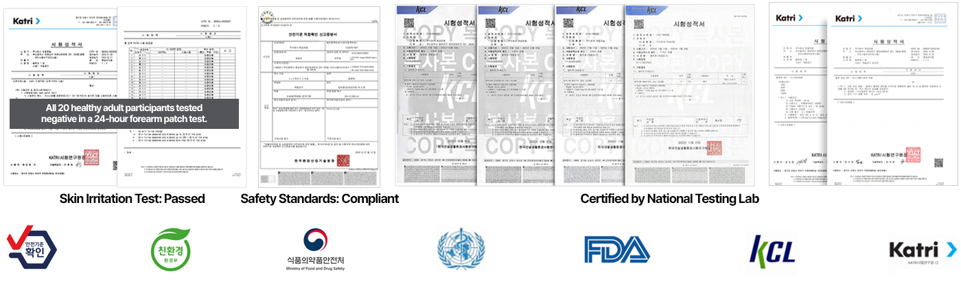 Our product is certified by FDA, WHO, KCL, and KATRI for proven safety and efficacy, and utilizes patented nano-deodorizing technology to deliver 99.9% deodorization and sterilization performance.